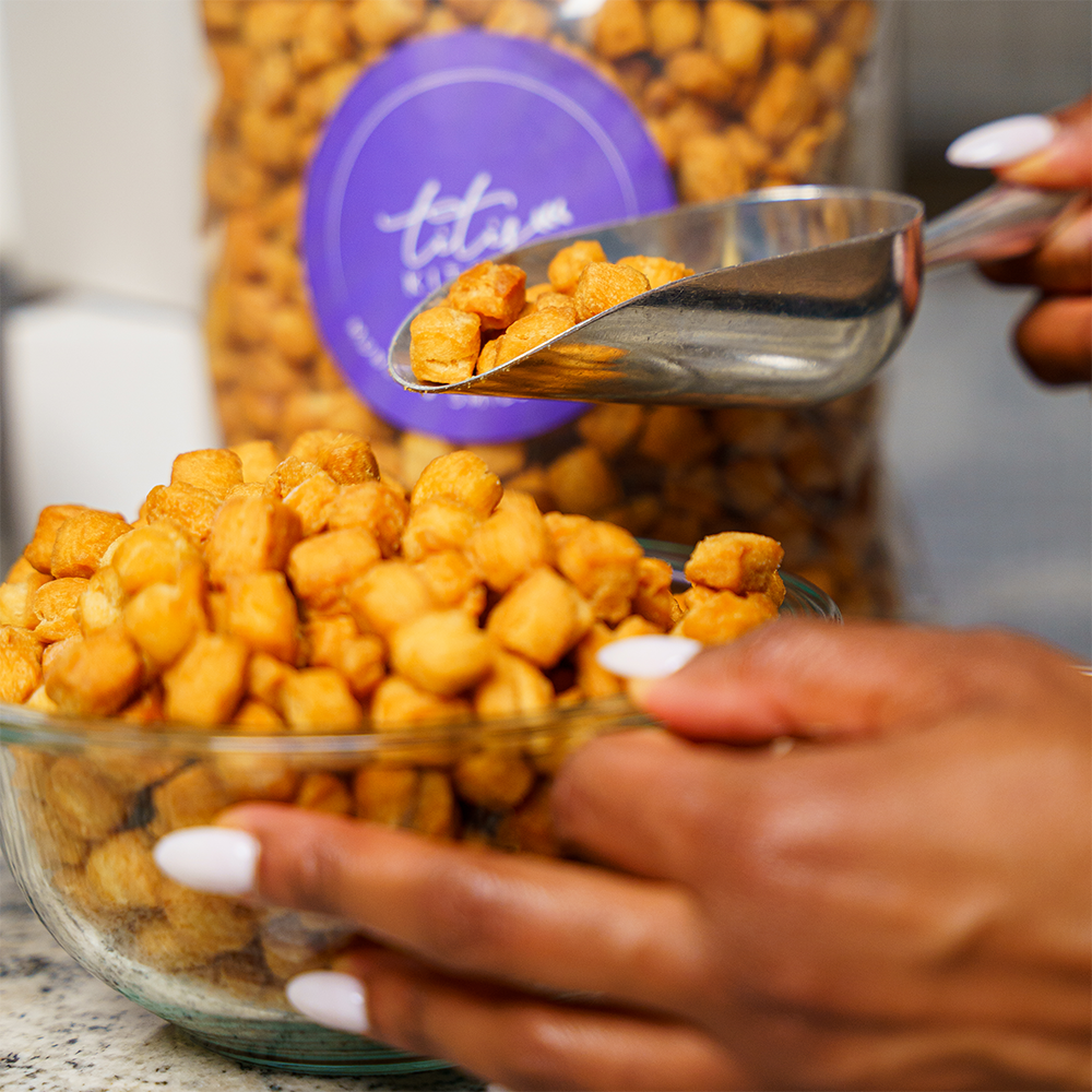 Go big on crunch. Our Jumbo Chinchin Bag gives you 5 pounds of Titi’s Kitchen chinchin, perfect for parties, dessert bars, family gatherings, and refilling jars at home.